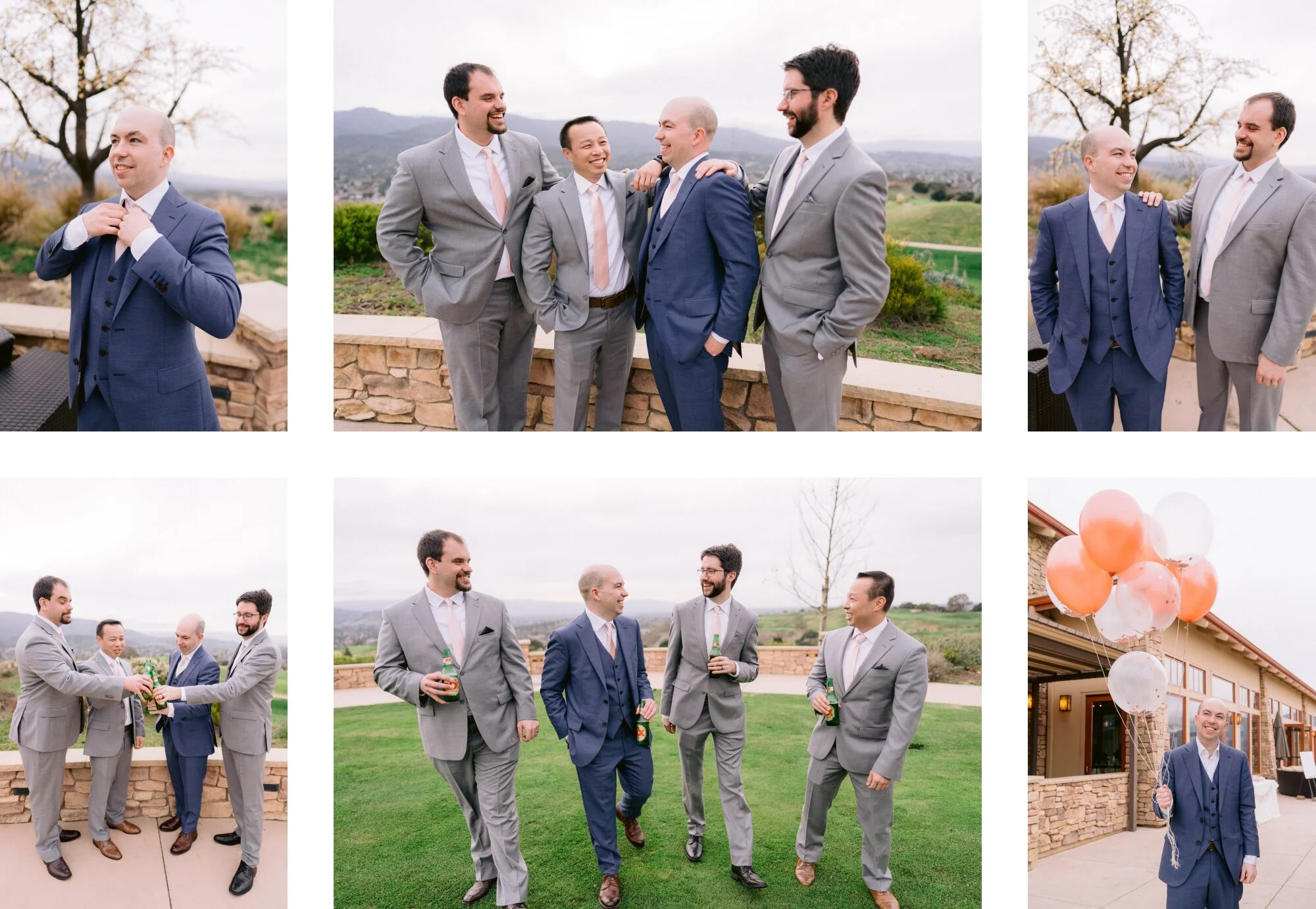 While Minh and her bridesmaids were getting ready inside the bridal suite, Hobart and his groomsmen were passing the time together outside on the grounds of Boulder Ridge Golf Club. Hobart’s groomsmen consisted of his two brothers and his best friend. The men spent the waiting time sharing some beers, sharing some jokes, and blowing up some balloons for the guest book table.